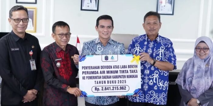 NUNUKAN.LK – Bupati Nunukan Irwan Sabri bersama Wakil Bupati Nunukan Hermanus mencacat pendapatan positif di tahun pertama pemerintahannya dengan penerimaan hasil laba dividen Perusahaan Umum Daerah (Perumda) Air Minum Tirta Taka Nunukan, tahun buku 2025 sebesar Rp 2,641.215.962. Penyerahan dividen