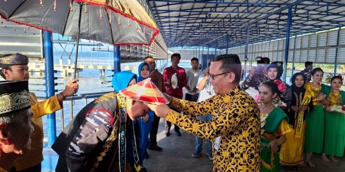 NUNUKAN.LK – Pemerintah Nunukan menyambut kedatangan pejabat baru Komandan Pangkalan TNI Angkatan Laut (Danlanal) Nunukan melalui prosesi adat Tepung Tawar di Dermaga Pelabuhan Lintas Batas Laut (PLBL) Liem Hie Djung, Nunukan, Jumat (3/4/2026) Kedatangan Danlanal Nunukan yang disambut Penjabat Sekretaris