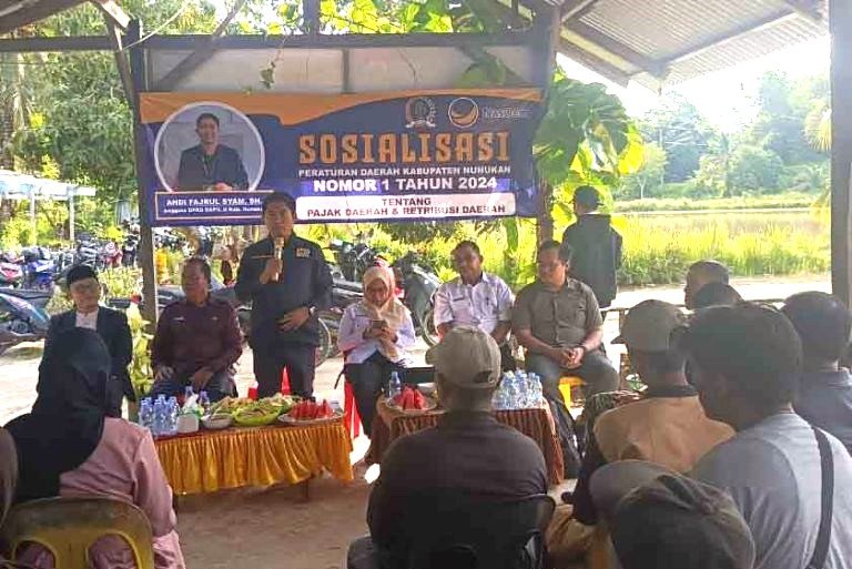 NUNUKAN.LK – Anggota DPRD Kabupaten Nunukan, Kalimantan Utara, Andi Fajrul Syam, menggelar sosialisasi Peraturan Daerah (Perda) Nomor 1 Tahun 2024 tentang Pajak Daerah dan Retribusi Daerah.