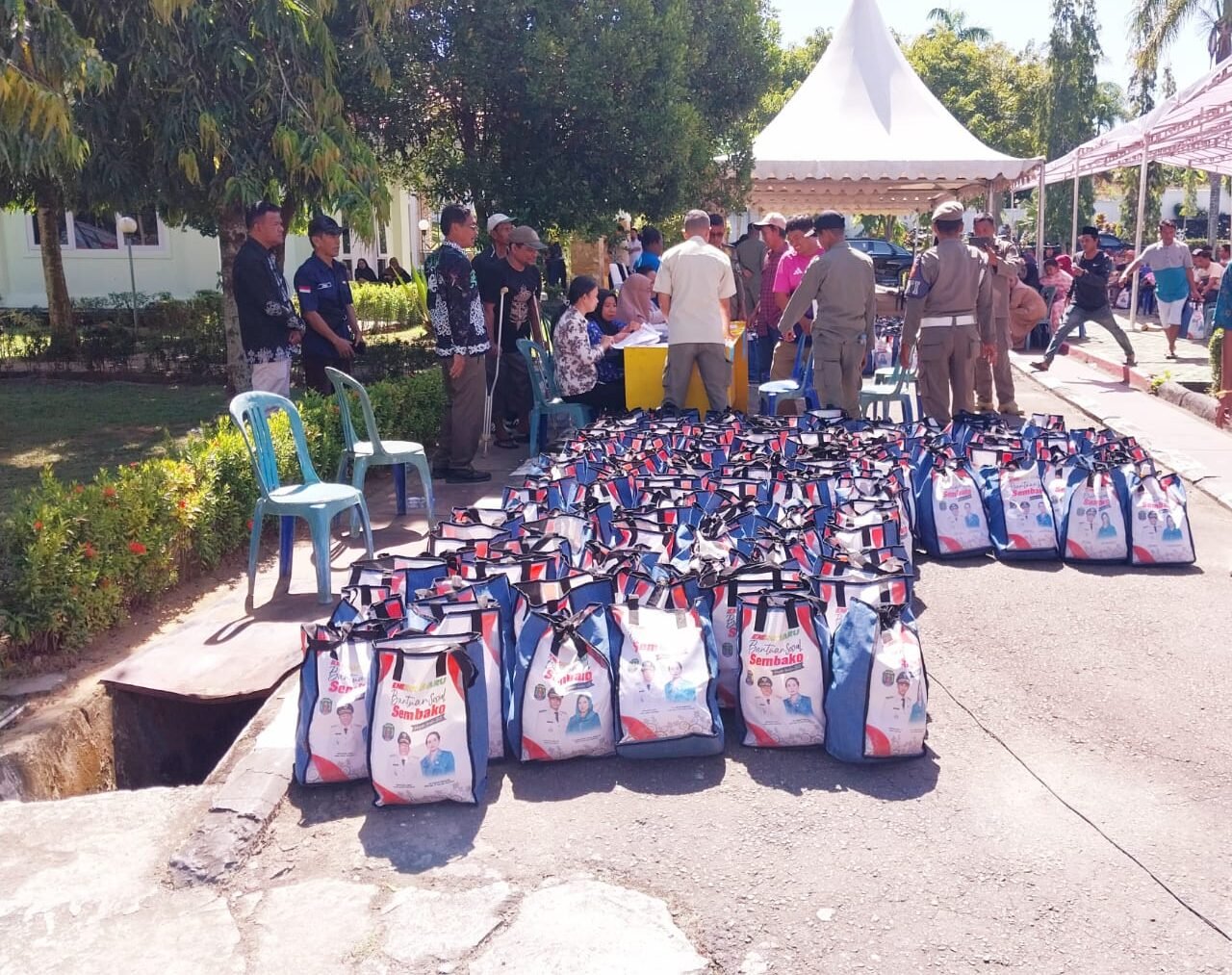 Adapun isi paket sembako berupa 2 liter minyak goreng, satu karung beras dengan berat 5 kilogram, 2 kilogram gula pasir, 1 botol sirup, 2 kaleng susu kental manis, 2 kilogram tepung terigu dan 1 goddy bag/tas buah.