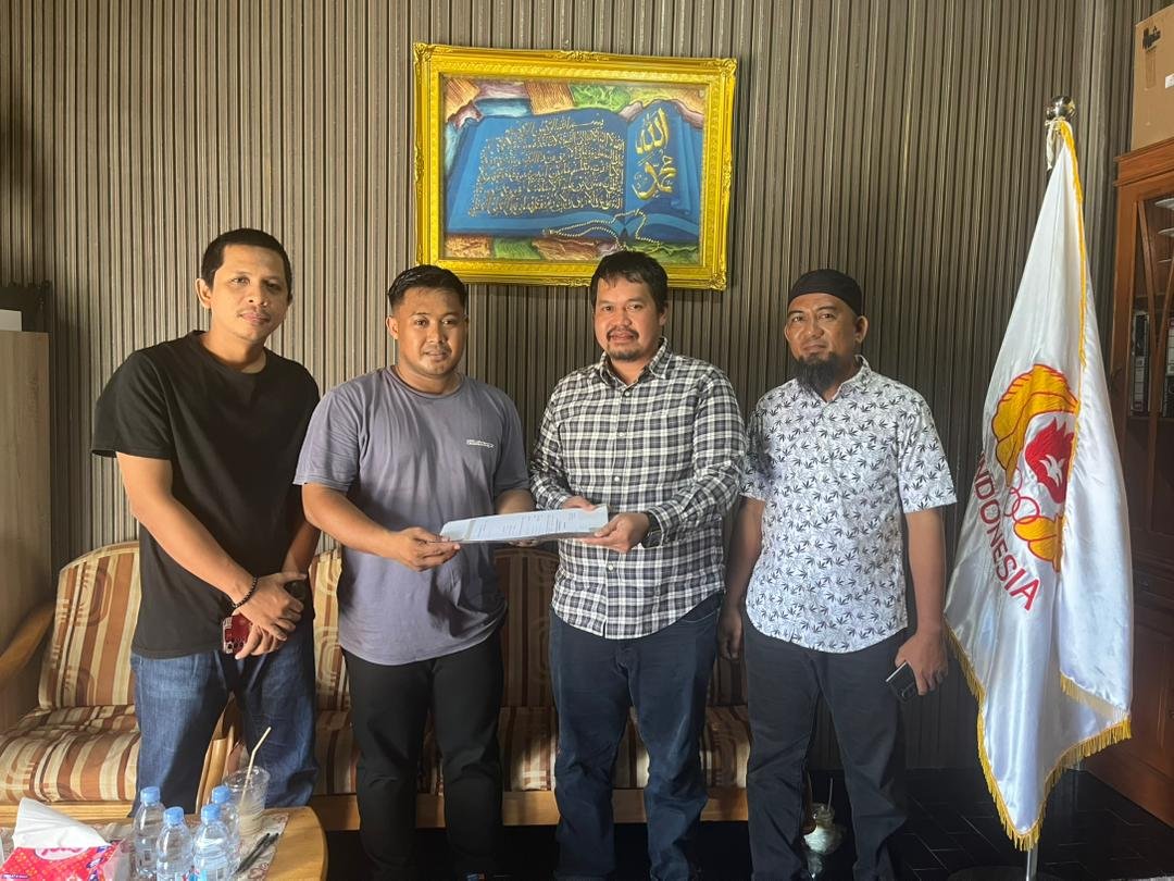 Ketua KONI Nunukan Samran Nuralim bersama anggota TPP Koni Nunukan, Hasanuddin menerima berkas pendaftaran Muhammad Yasin sebagai calon ketua KONI periode 2025–2029