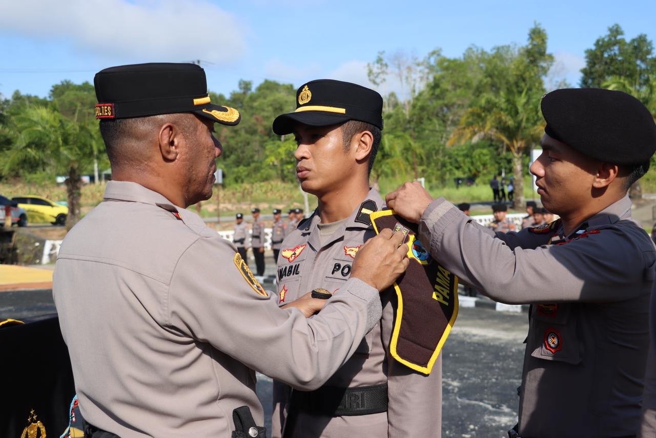 Kapolres Nunukan Bonifasius Rumbewas menyematkan tanda Pamapta di anggota Polres Nunukan