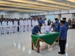 Sekda Nunukan Sambut Kedatangan Danlanal Baru dengan Penyematan Akribut Khas Daerah