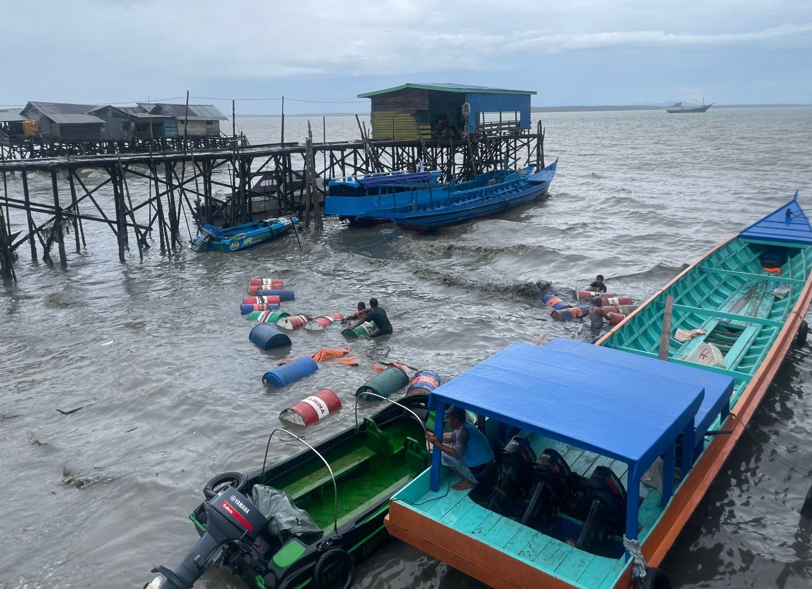 “Angin kencang dan ombak besar menyebabkan perahu bermuatan 30 drum BBM tenggelam,” ujarnya.